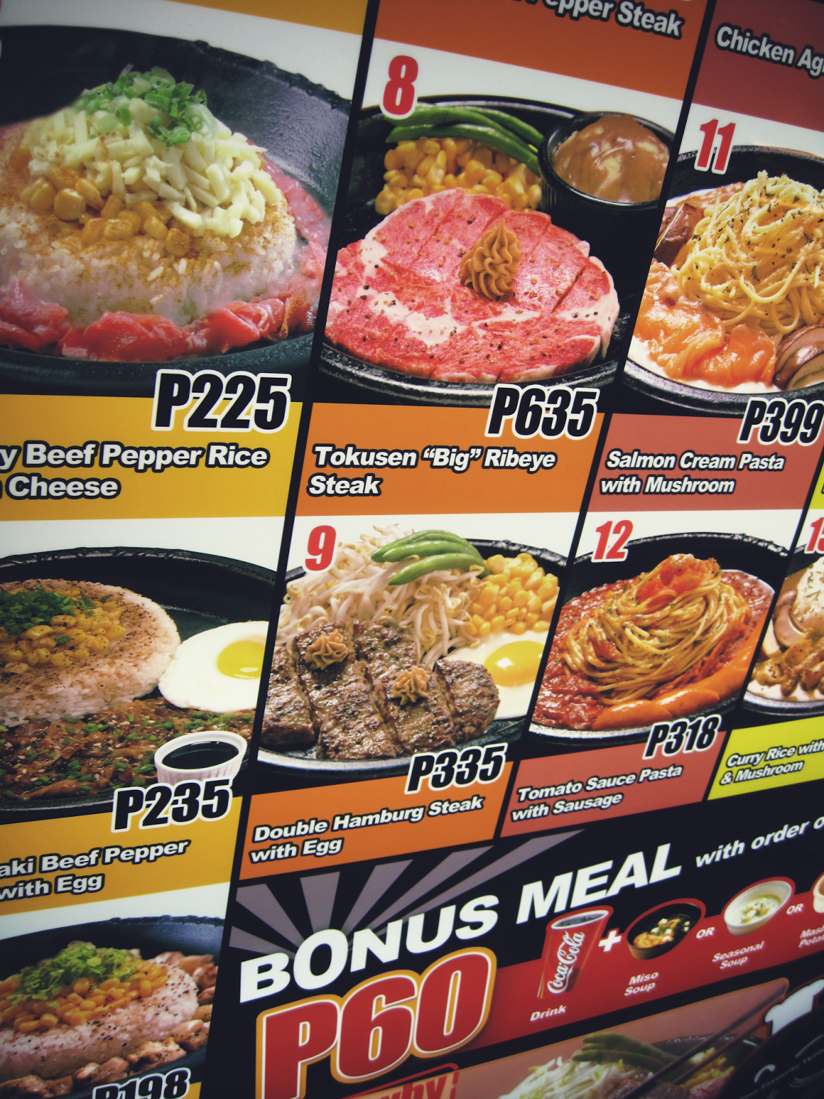 Steaks, Pastas, Curry Rice, and not forgetting our signature Pepper